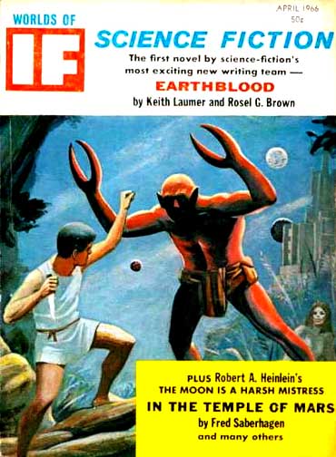 Earthblood by Keith Laumer and Rosel George Brown. Serialized in If, April to July 1966. Such a collaboration sounds out of the blue, and honestly I’m not even sure how or why Laumer and Brown came together to work on a novel. But it’s not totally unexpected. Laumer and Brown made their debuts at almost the exact same time, at the tail end of the ’50s, and both were prolific during the pre-New Wave years. They were also very close in age. Sadly Brown died at just 41 years old in 1967, one year after Earthblood was published, while Laumer suffered a stroke in 1971 which left him unable to write for a time. I know little about Earthblood aside from it being an adventure novel, of the sort that was common in If in the ’60s.