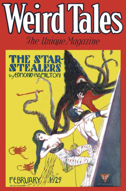 Born in 1904, Edmond Hamilton was, along with friend and close contemporary Jack Williamson, one of the last of the classic SF pulp writers, and one of the few of that type to survive the raising of standards for SF writing that came about during the World War II years. He tried but failed to strike a business relationship with John W. Campbell, but found Campbell’s criteria to be too exacting and finicky, so he was to appear regularly in just about every genre magazine of the era that Campbell wasn’t editing. In the pre-war years Hamilton was known for his quite literally world-shattering space opera, being one of the pioneers of that subgenre; but whereas E. E. Smith captured readers’ imaginations with his novels, Hamilton stuck to the short story and novella early in his career, and he also deliberately mixed horror elements in with his SF. It shouldn’t be surprising, then, that he had made his debut in Weird Tales, and was maybe the most consistent contributor of “weird-scientific” stories for that magazine. He remained loyal to Weird Tales until it shut down (not for the last time) in 1954. So we have a story today that’s not really horror at all, but rather is SF that could’ve just as well have been published in Startling Stories or Thrilling Wonder Stories at the time. This is also one of those cases where I checked out the story based on the nifty magazine cover it inspired.