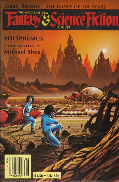 First published in the August 1981 issue of The Magazine of Fantasy and Science Fiction, which is on the Archive. It’s been reprinted only a few times, in The 1982 Annual World’s Best SF (ed. Arthur W. Saha and Donald A. Wollheim), and the Shea collections Polyphemus and The Autopsy and Other Stories. The former has gotten a very recent reprint from Valancourt Books—so recent ISFDB hasn’t consistently listed yet.