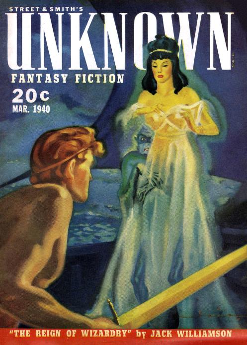 At first I wasn’t feeling it, and even by the end of this first installment I wouldn’t say I was onboard. Something is wrong here. It could be that I need to catch up on my Greek mythology, but this seems like a straightforward retelling of a myth that would’ve probably been common knowledge for readers in 1940. That Theseus starts out as a pirate and mostly uses his wits instead of his brawn to get the job done can only go so far. The thing about much of the material published in Unknown is that while a lot of it would now be called urban fantasy, the stuff that wasn’t still had a sense of humor—you could say a lust for life—that defined the magazine. Yet at least so far Williamson’s retelling of the minotaur-and-labryinth routine is humorless, and Williamson is not one for straight-faced action—pulpy action, sure, but not something trying to be this serious.