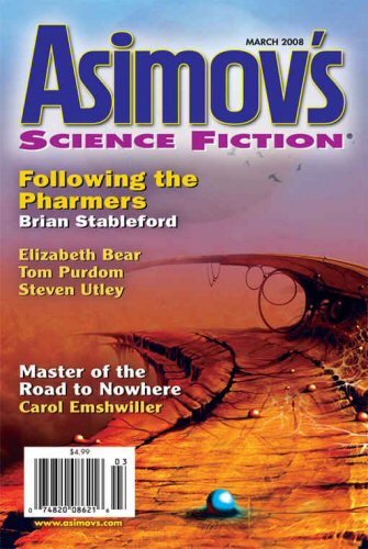 Whereas Lovecraft writes about the shoggoths and other such creatures with digust to the point of hysterics, Bear takes genuine interest in them. Aside from being readable, unlike Lovecraft (who too often strikes me as borderline unreadable), Bear’s prose is snappy, disciplined in its vocabulary, and not at all concerned with giving the reader the thorough impression of something that supposedly can’t be comprehended. The shoggoths, with their mysterious “mating” rituals and their pseudo-eggs (Harding collects a few of those, and why not), can possibly (if improbably) be understood, and that’s what Harding tries to do. Despite echoing Lovecraft with just its title, “Shoggoths in Bloom” does not read like Lovecraft at all; rather it reads far more like a different kind of pulp narrative from the last ’30s, by someone who maybe doesn’t have a thesaurus on their nightstand but who is not prone to manhandling the English language like Lovecraft is; it reads in parts, actually, a good deal like A. E. van Vogt.